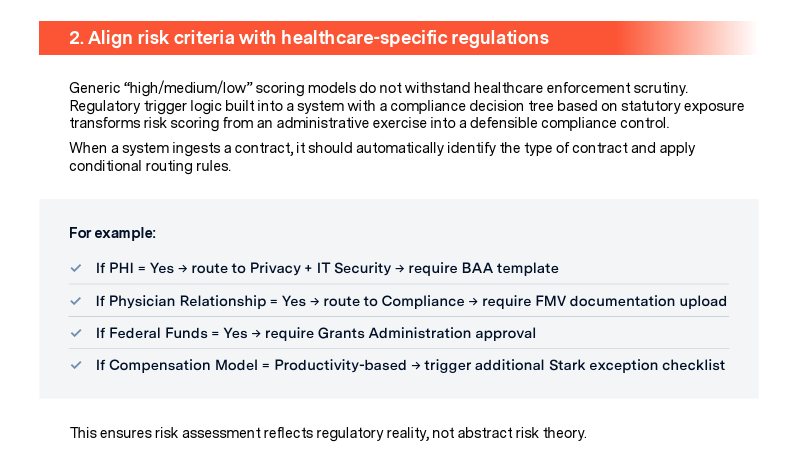 - Align risk scoring with Stark, AKS, HIPAA, and CMS exposure