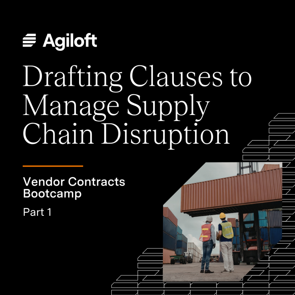 Become a Vendor Contracts Expert with our free training series. Laura Frederick is partnering with Agiloft to present Vendor Contracts Boot Camp, a 5-part training series for lawyers and contract teams focused on drafting, negotiating and managing vendor contracts. We’ll do a deep dive into the practical approaches you need when working on these critical contracts. Below you can watch past modules on-demand.